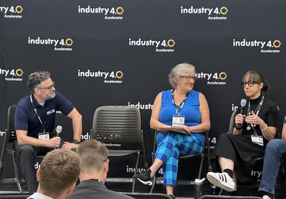 Kristin McLane (right), President of CIMx Software, speaking on the panel “Where to Start on Smart Manufacturing?” at the Advanced Manufacturing Expo in August 2024.